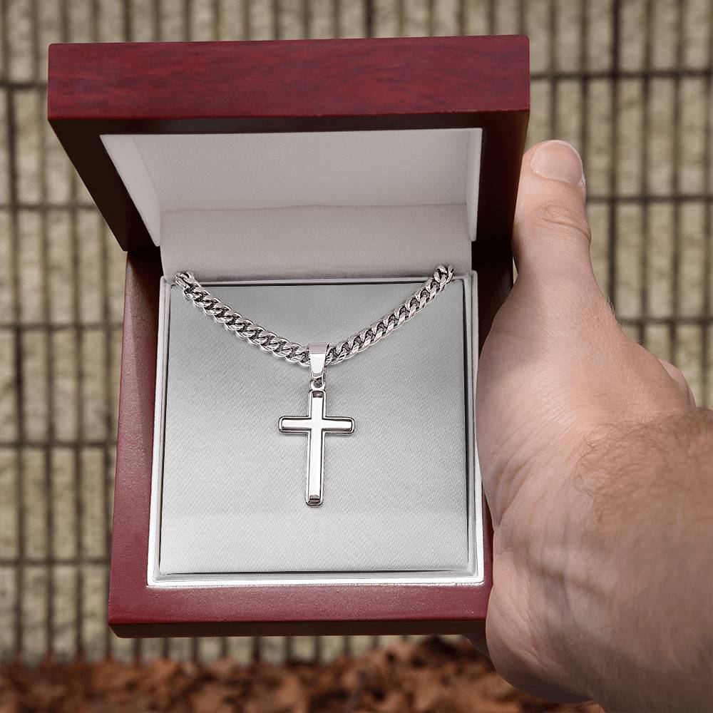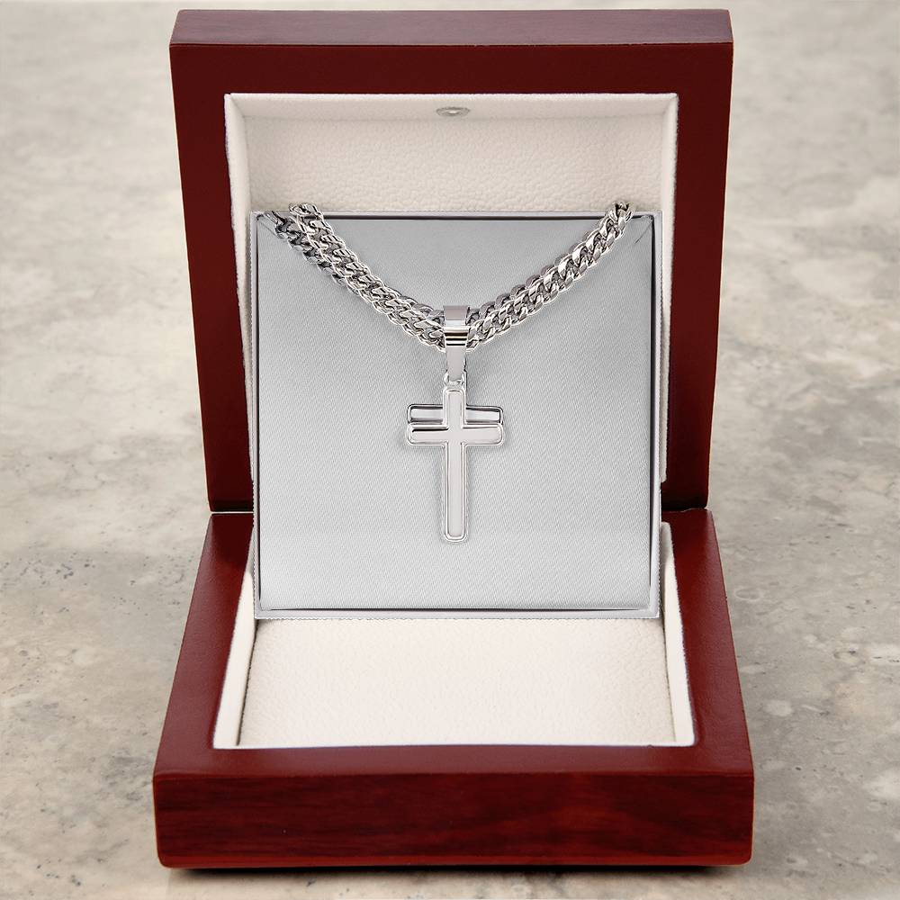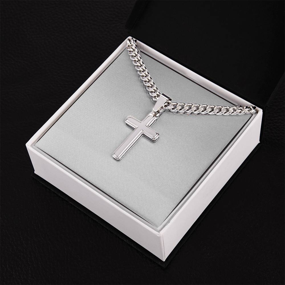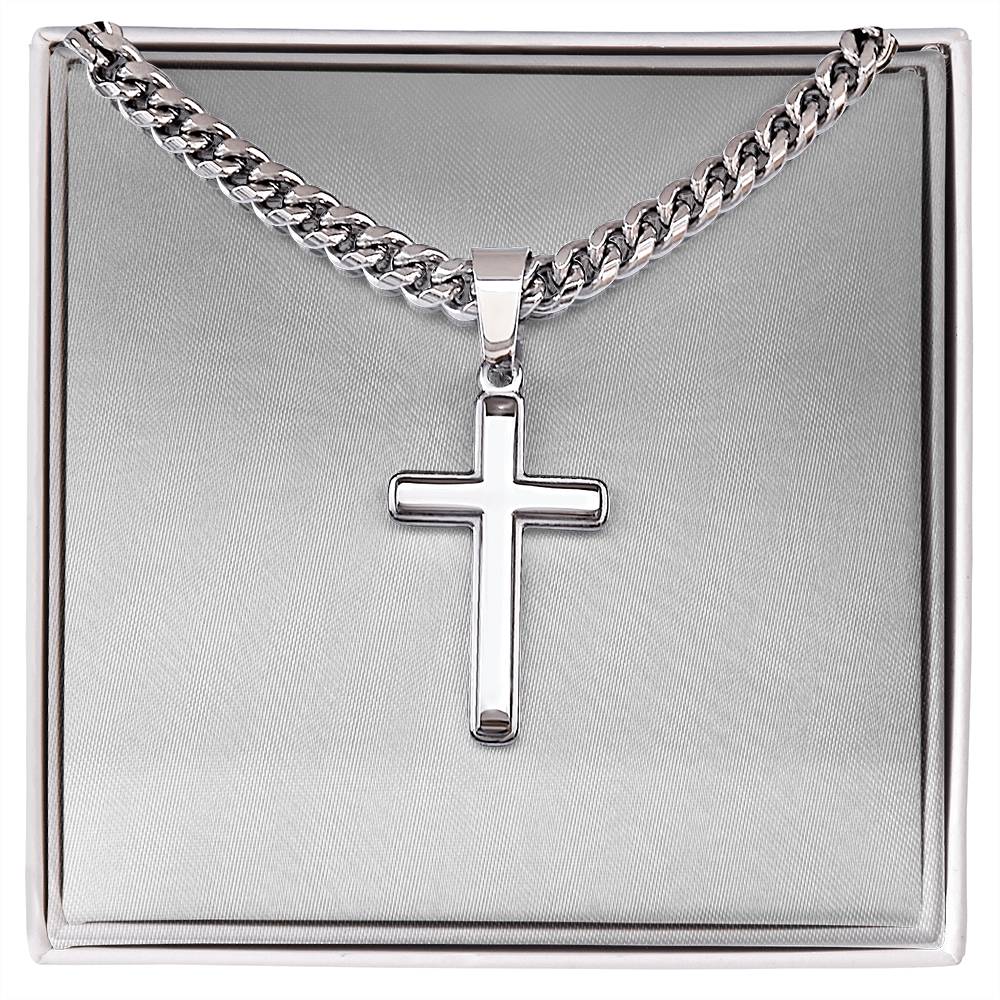 Wear your faith proudly with this Cuban Chain with Artisan Cross Necklace. Perfect for special occasions or everyday wear, this makes a wonderful gift idea for you or your loved one. Personalizing the back of the cross pendant will surely make this gift treasured for years to come!